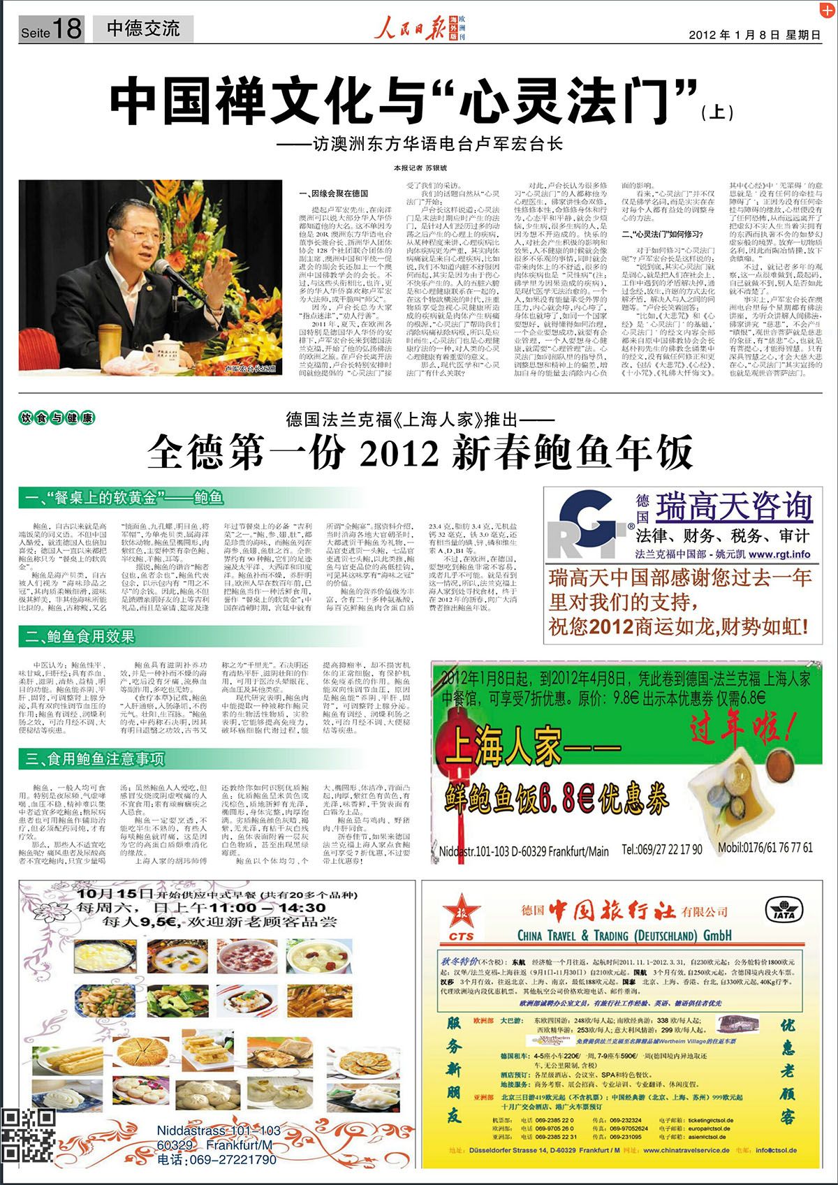《人民日报》海外版欧洲刊 2012-1-8 第19期 第18版